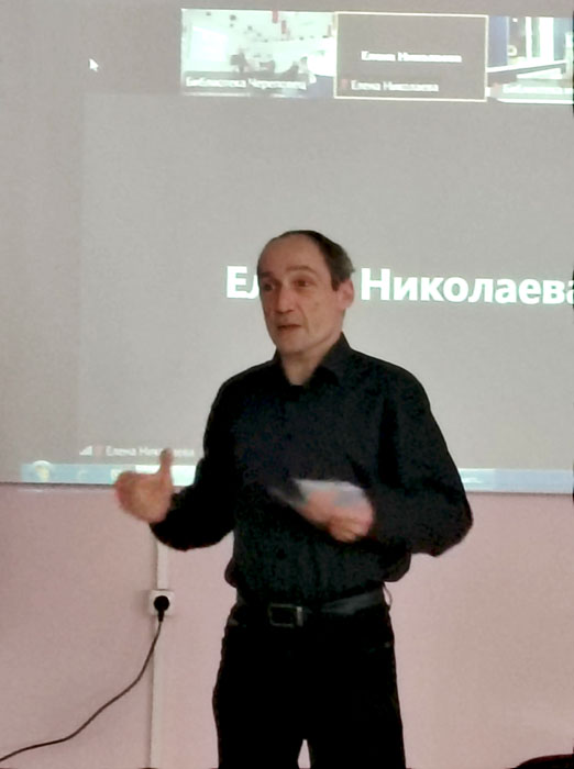 Темой встречи стала деятельность именных библиотек по продвижению наследия и сохранению памяти о выдающихся деятелях литературы и искусства, чьи имена присвоены учреждениям. В ней приняли участие библиотечные работники из Череповца, Абаканова, Вологды, Тотьмы, Санкт-Петербурга, Сургута, Москвы, Вологды. Открыла встречу Л. Н. Плоскова, зав. отделом социокультурных коммуникаций и методического обеспечения Верещагинки. Она познакомила с историей присвоения имени выдающегося художника-земляка, а также представила информационно-выставочное пространство о В. В. Верещагине, оформленное в ЦГБ на средства гранта Президента Российской Федерации для поддержки творческих проектов общенационального значения в области культуры и искусства».