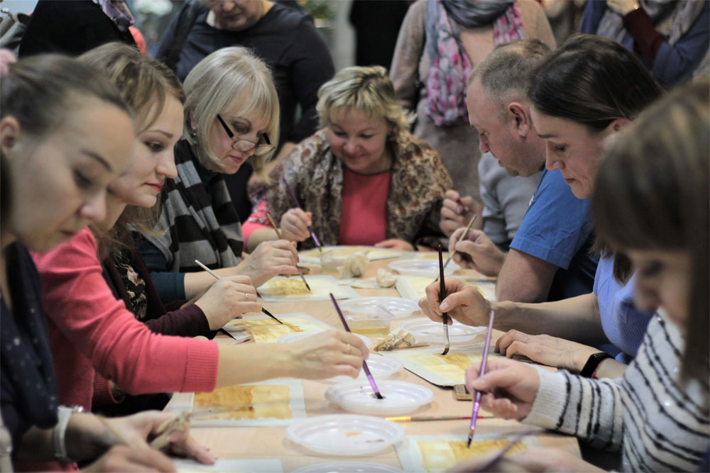 Наталия Толоконцева – педагог Дворца детского творчества им.Алексеевой, вот уже несколько лет увлекается техникой кофе-арт или кофейной живописью. Кофейная живопись – популярное направление в современном поп-искусстве. Арсенал кофейной палитры обладает множеством оттенков: от песочно-кремового до темно-коричневого, от нежного латте до черного как ночь, эспрессо. Для гостей выставки автор провела чудесный мастер-класс. Аромат кофе, монохромные пейзажи, подшучивания участников мастер-класса друг над другом, прекрасная живая музыка в исполнении Романа Герасимова - все это подарило участникам мероприятия прекрасное настроение и кофейную картинку на память о выставке. Спасибо Наталии Толоконцевой и всем нашим гостям!