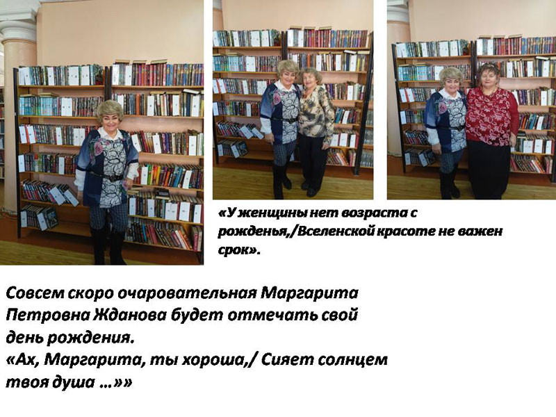 Стихи, песни звучали в течение всего вечера, в том числе и те, которые были адресованы нашим именинницам – Татьяне Федоровне и Маргарите Петровне.